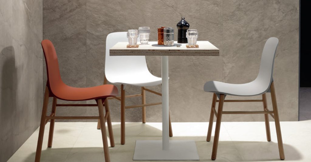 Muse is the most contemporary example of a fusion project that brings together the aesthetic qualities of stone and marble. This absolutely original technological project features two new solutions: a new well-worn surface finish called ‘patinated’ and the ‘open grain’ decoration.These terms refer to surfaces where the grain, as if cut from a single stone block, are specular and create different natural geometrical patterns.