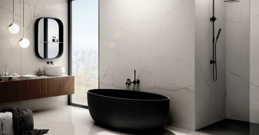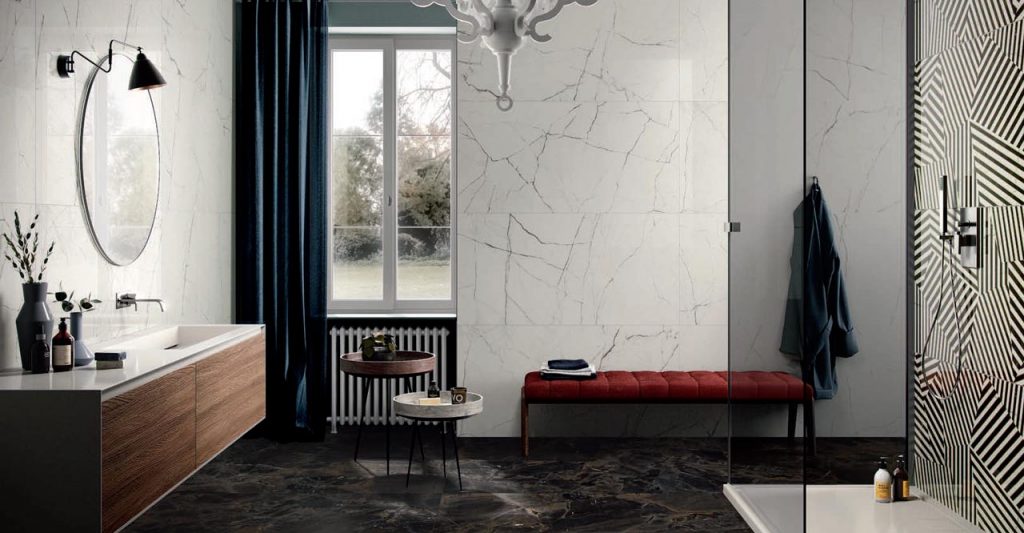 Full-body porcelain stoneware, The Room comes in 4 new colours and slab formats of 120×260 cm, 120×120 cm and 60×120 cm, all with a thickness of 6.5 mm and is suitable for both flooring as well as for full wall cladding. It has two surface finishes: an all round shiny gloss-honed version and a natural one whose originality lies in the different light refractions on its surface. The Room is ready to become a unique collection, currently consisting of eight strongly differing “marbles” both in appearance and origin; a unique collection capable of satisfying the most sophisticated tastes, for top quality modern and original surroundings.
