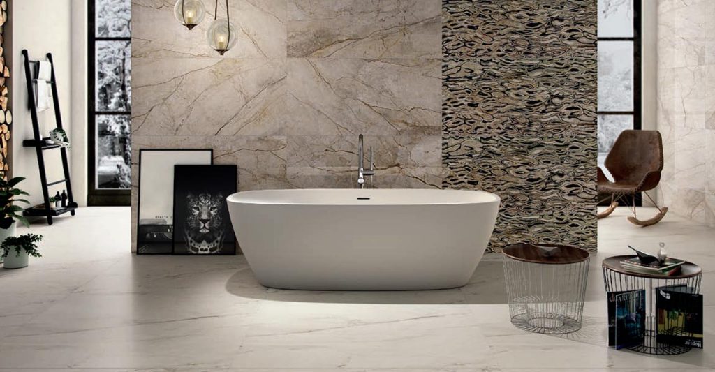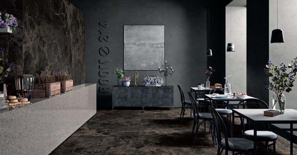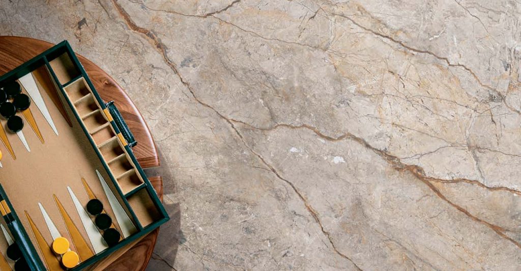 Imola Ceramica’s exploration path continues with regard to the wealth of quality marbles and their interpretation. Once again, the project is the perfect mix between the potential of ceramic slabs and the modernity of creative language and research. The Room is a wealth of four new proposals that interpret reference models from a variety of areas, differing in renown and how they are used.