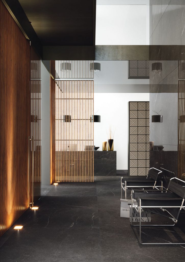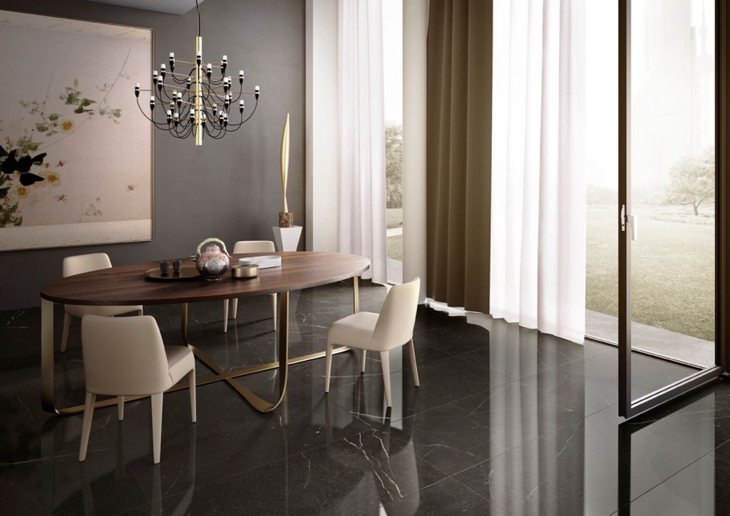 The Latin name emphasises the creative origin of the collection. Genus, meaning seed, origin, new development. Most companies search for natural slabs that they can reproduce in their tiles. We take a different approach. Our inspiration comes from natural things that we then re-interpret “in our own way”, developing absolutely new features and tweaks, so that we can provide you with something unique and unparalleled. We start with: white marble, beige marble/stone and black stone. From three main colours we have created an infinite number of slabs, selected using the same process as in natural quarries, by sorting them according to purity and colouring.